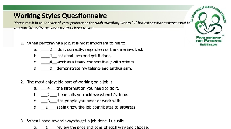 Discover Your Dominant Working Style: Questionnaire & Scoring | Course Hero