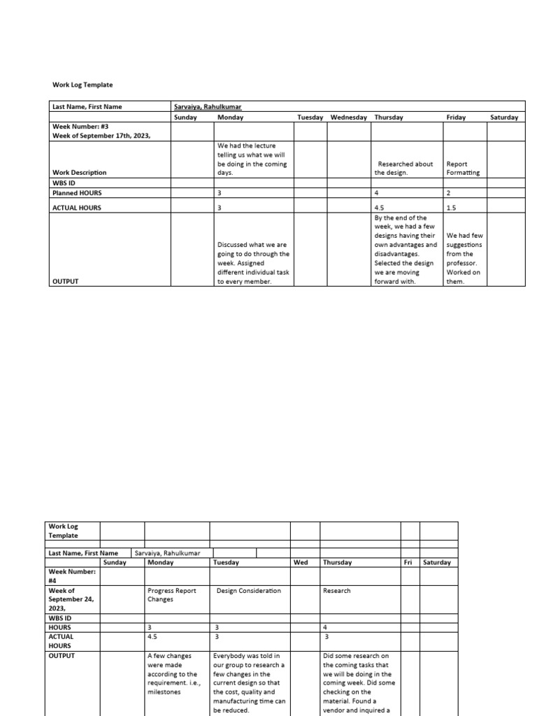 Work Log Template Week 3 To 4 | PDF