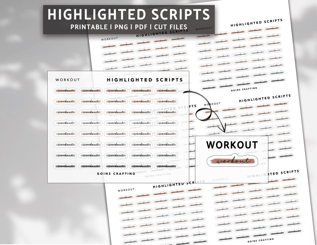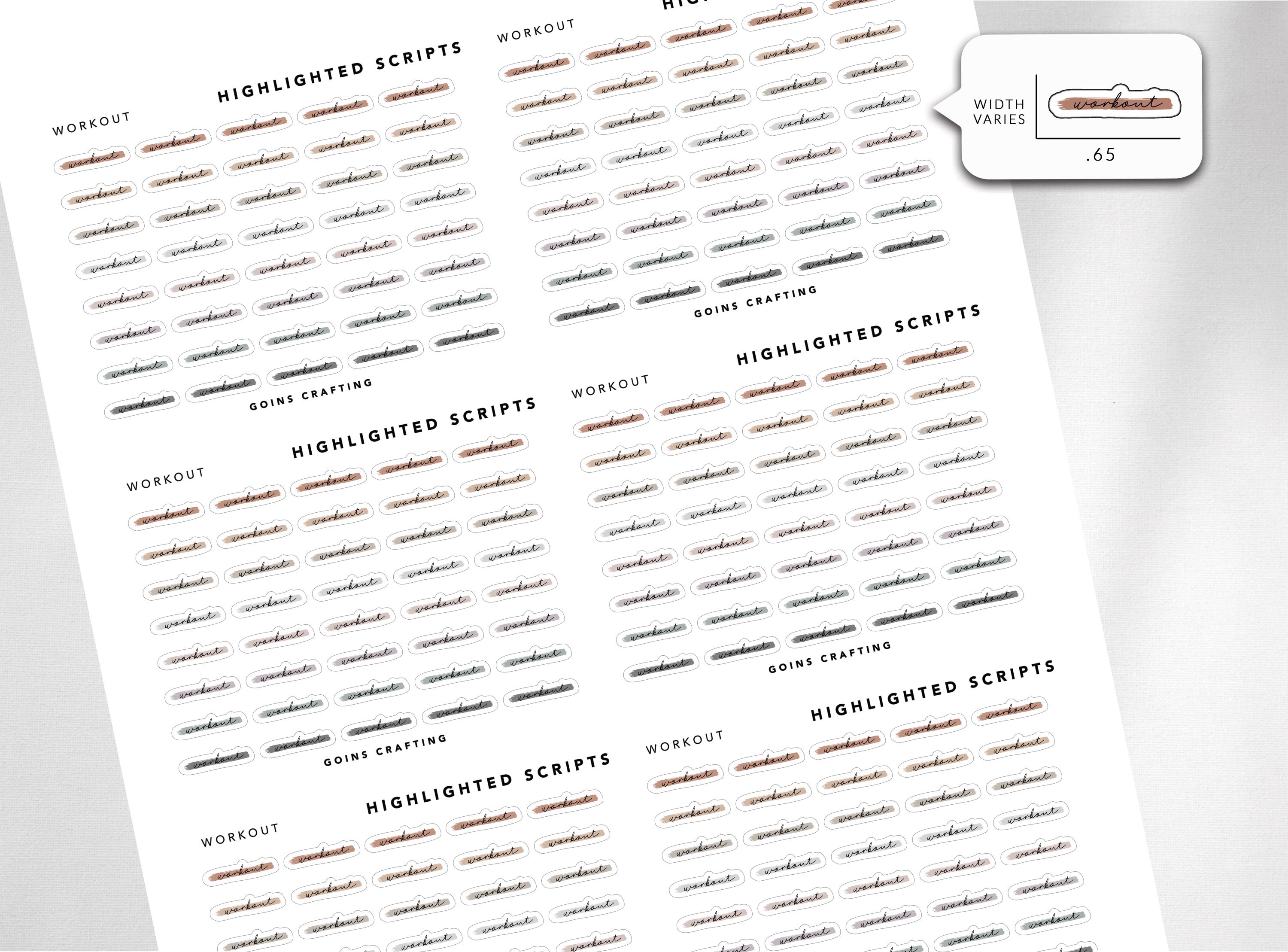 WORKOUT Cursive Highlighted Scripts, Minimal Planner Stickers, Journal ...