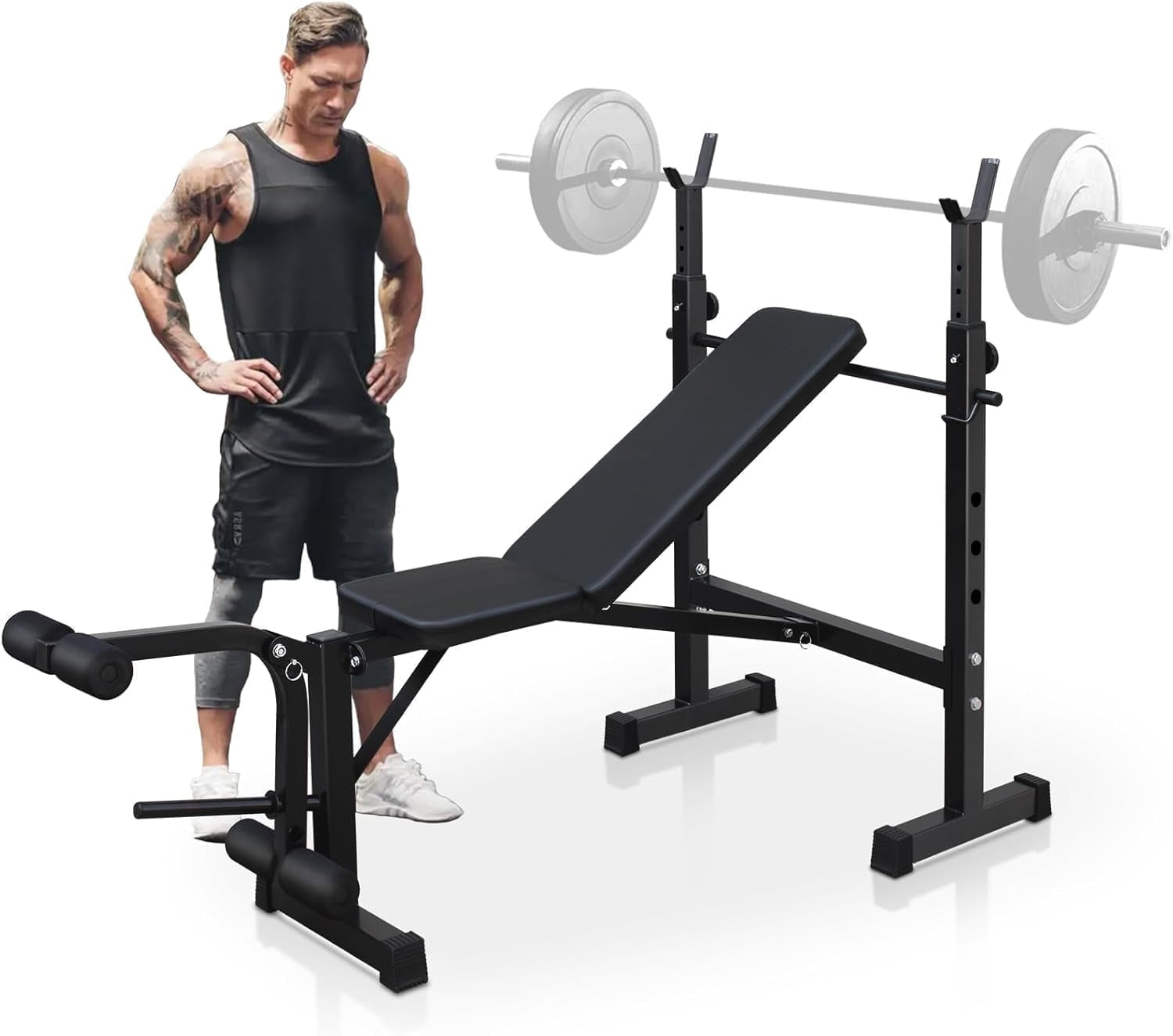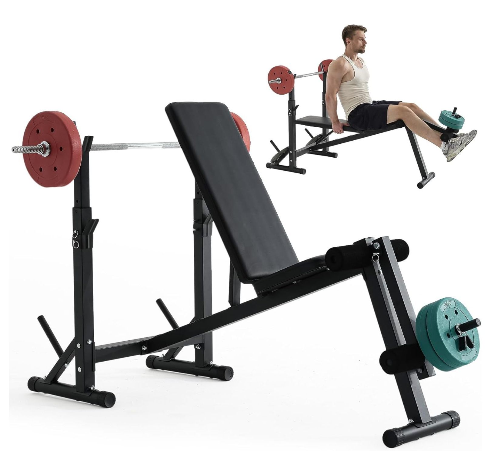 TLSUNNY 900LBS Adjustable Weight Bench Set, w/ Barbell Rack, Leg ...