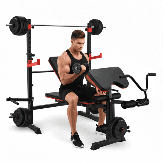 Multi-Function Weight Bench Set with Rack and Leg Extension/Curl ...
