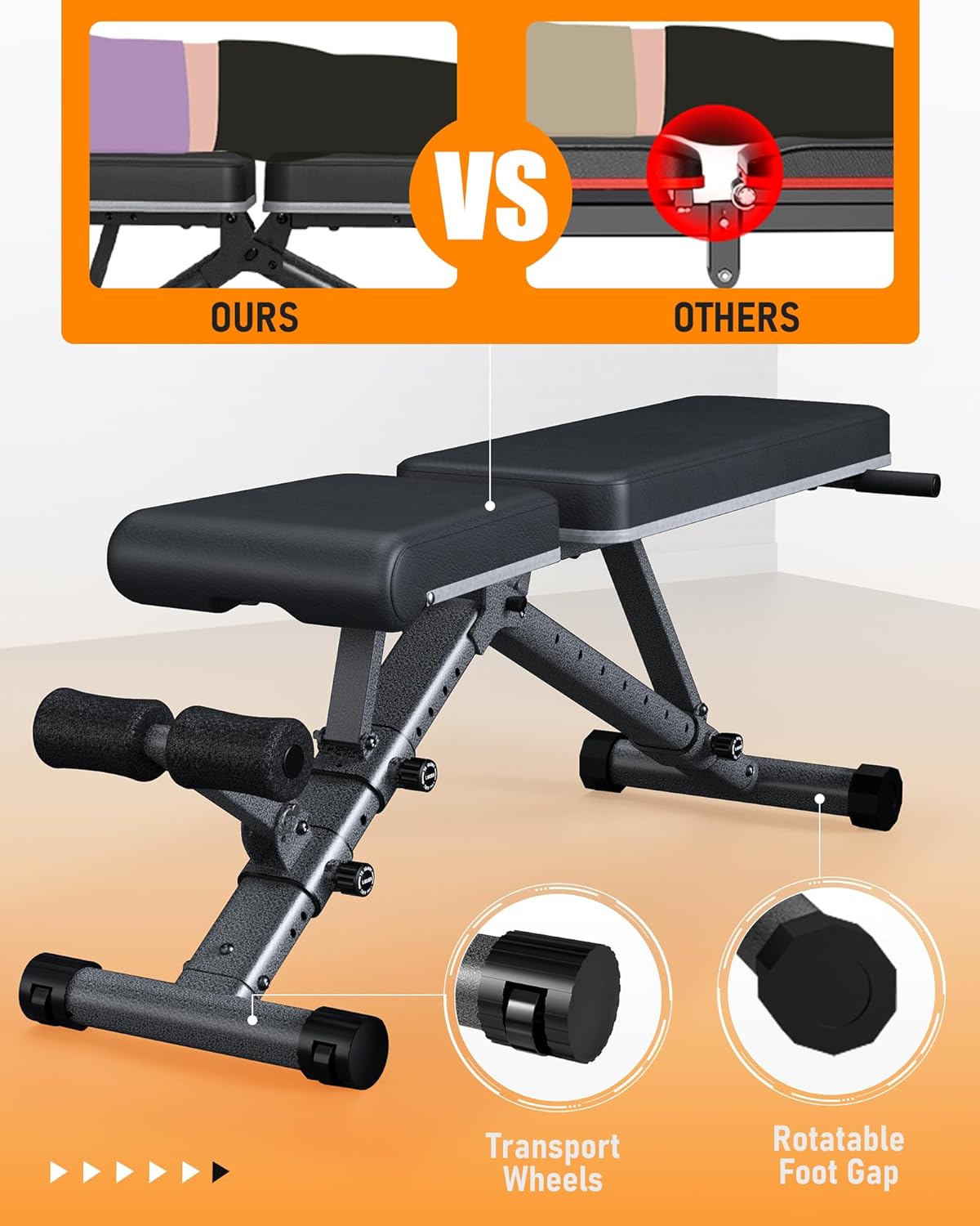 Adjustable Weight Bench,Foldable Workout Bench Press for Home Gym,900LB ...