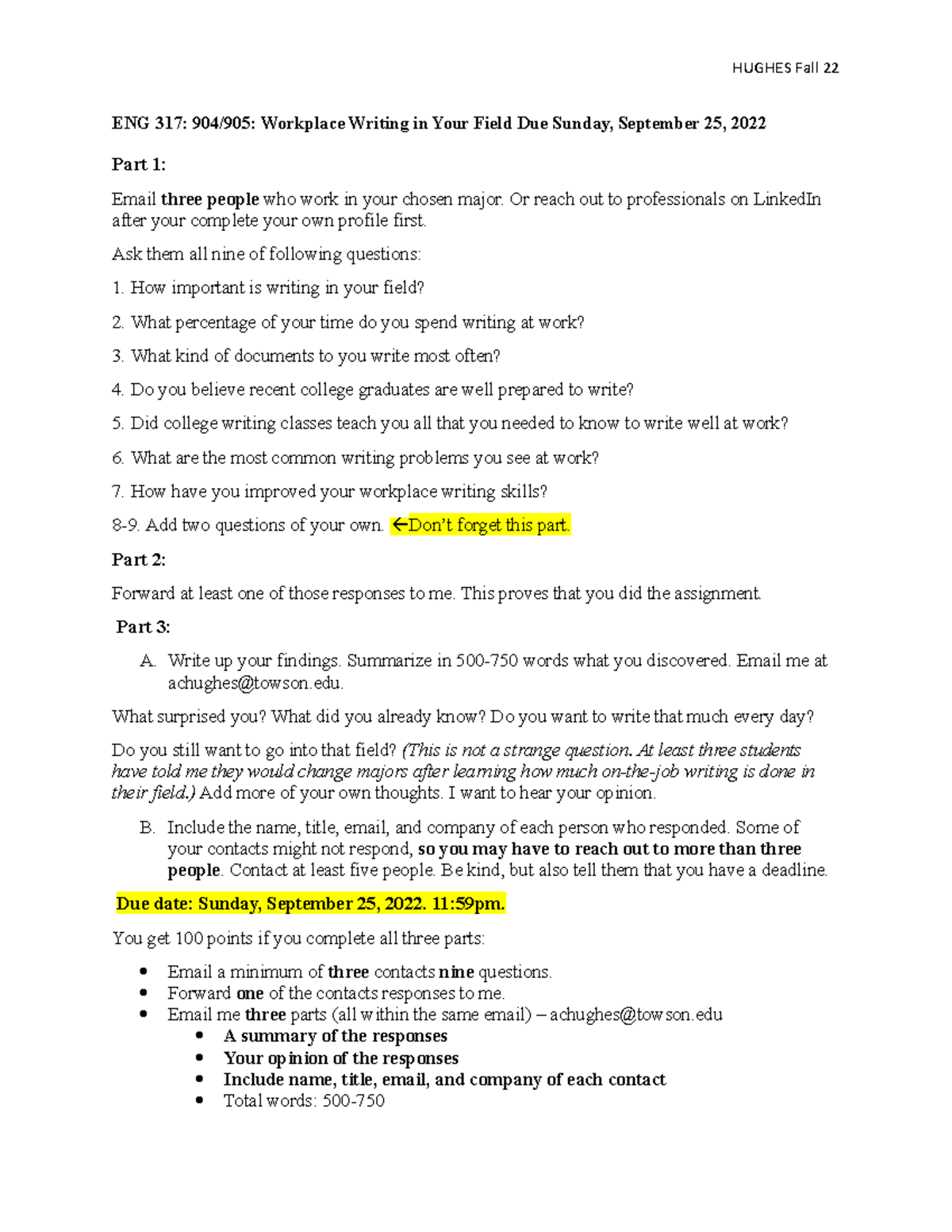 Workplace Writing Assignment Fall 22 - HUGHES Fall 22 ENG 317: 904/905 ...