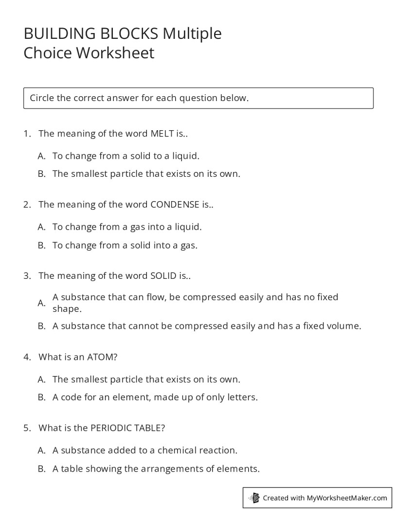 BUILDING BLOCKS Multiple Choice Worksheet - My Worksheet Maker: Create ...