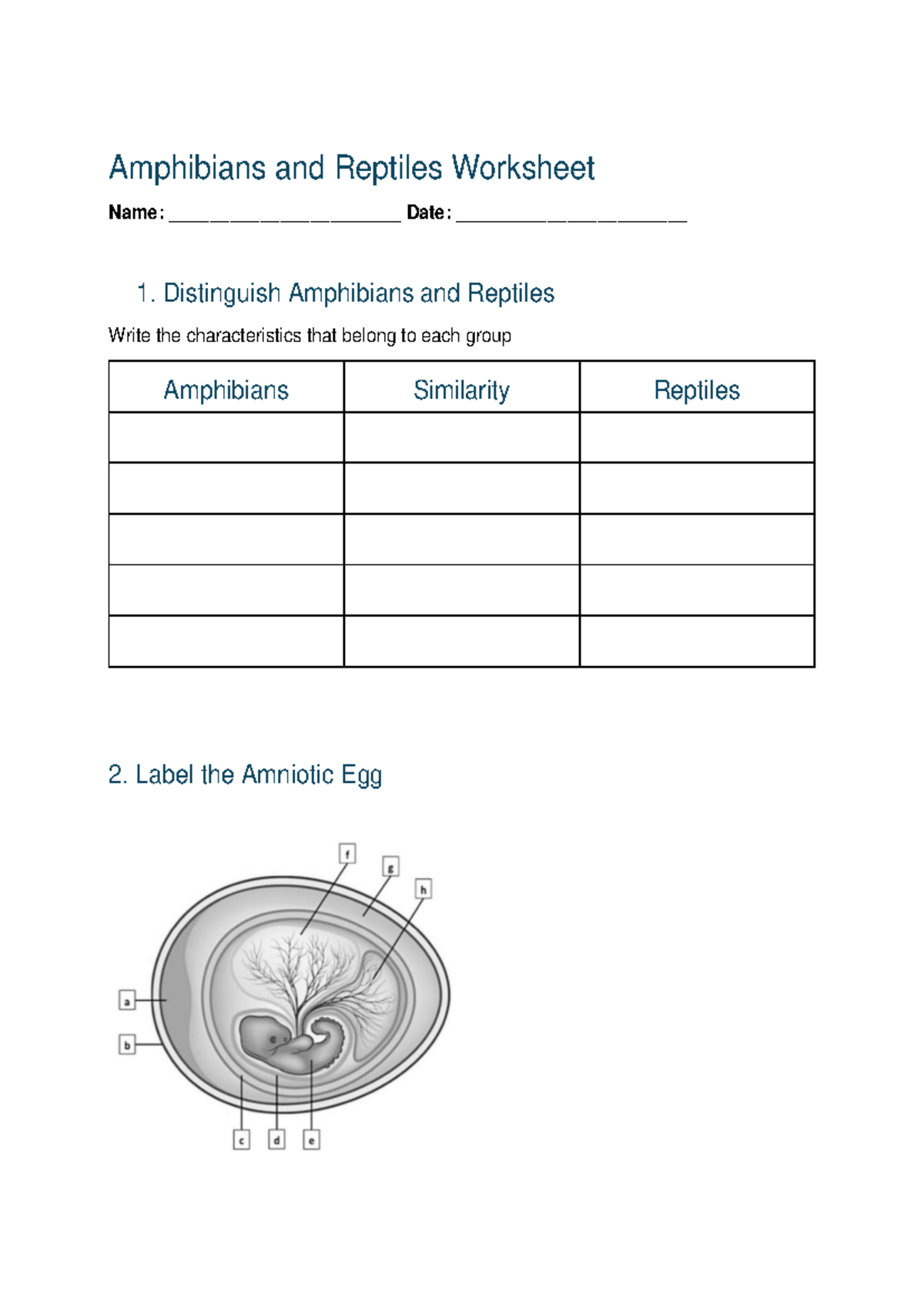 Reptiles and Amphibians Comparison Worksheet - Studocu