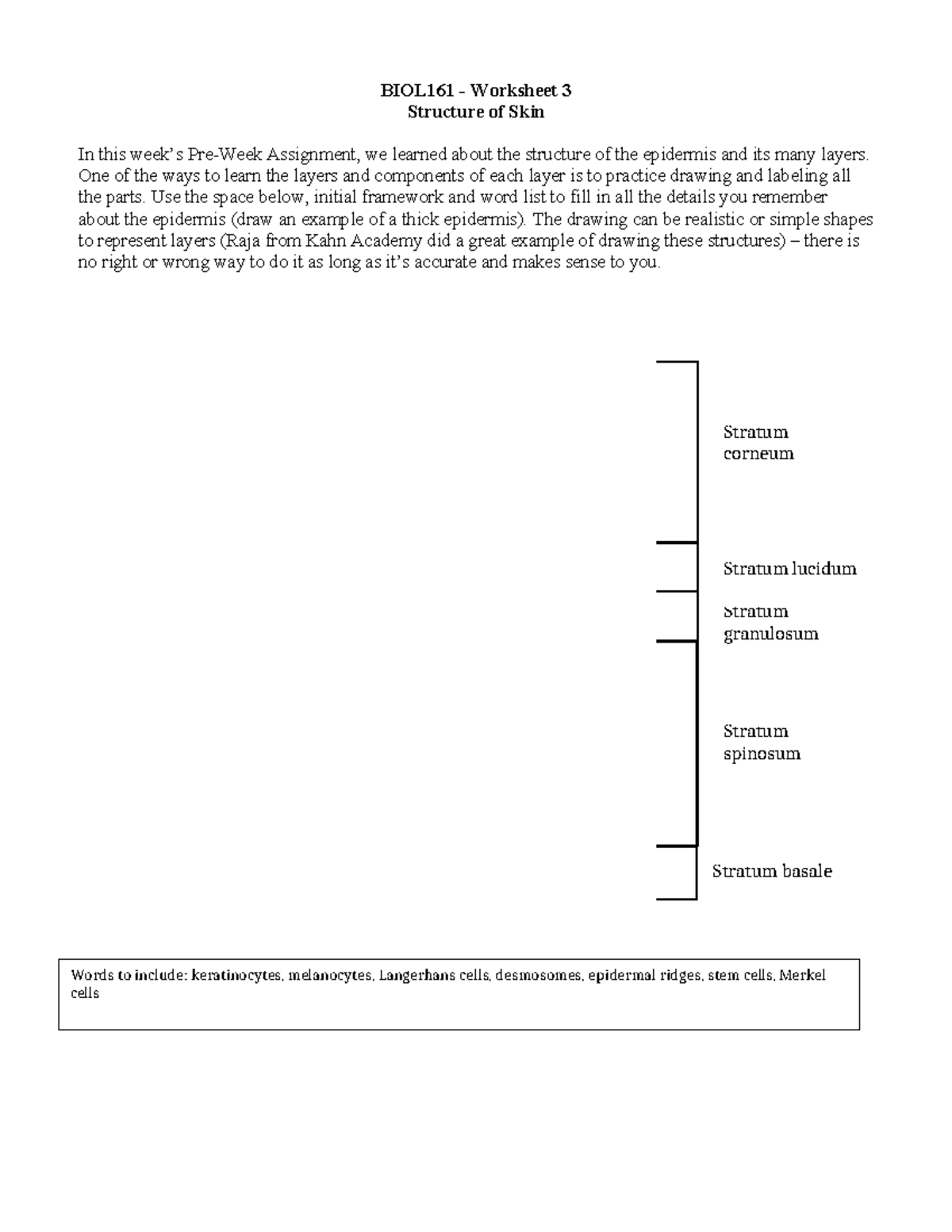 BIOL161 Worksheet 3: Detailed Notes on Skin Structure - Studocu