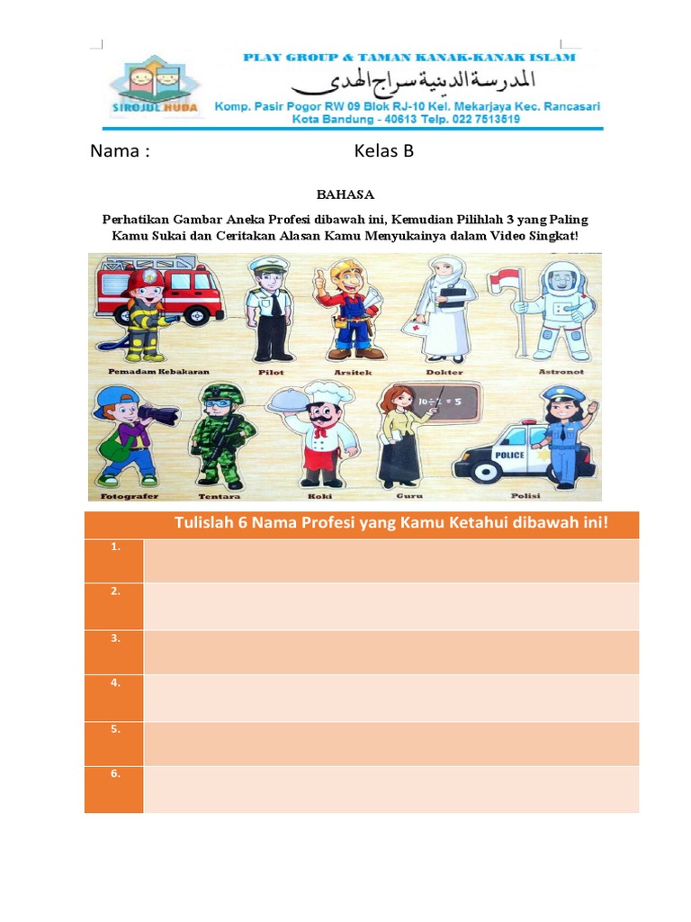 Worksheet & Printable Tematik Mengenal Profesi. Terdiri dari 35 lembar ...