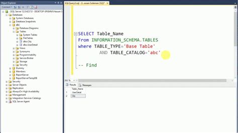 Get The List Of All Tables In A Database Using Tsql In Sql Server My