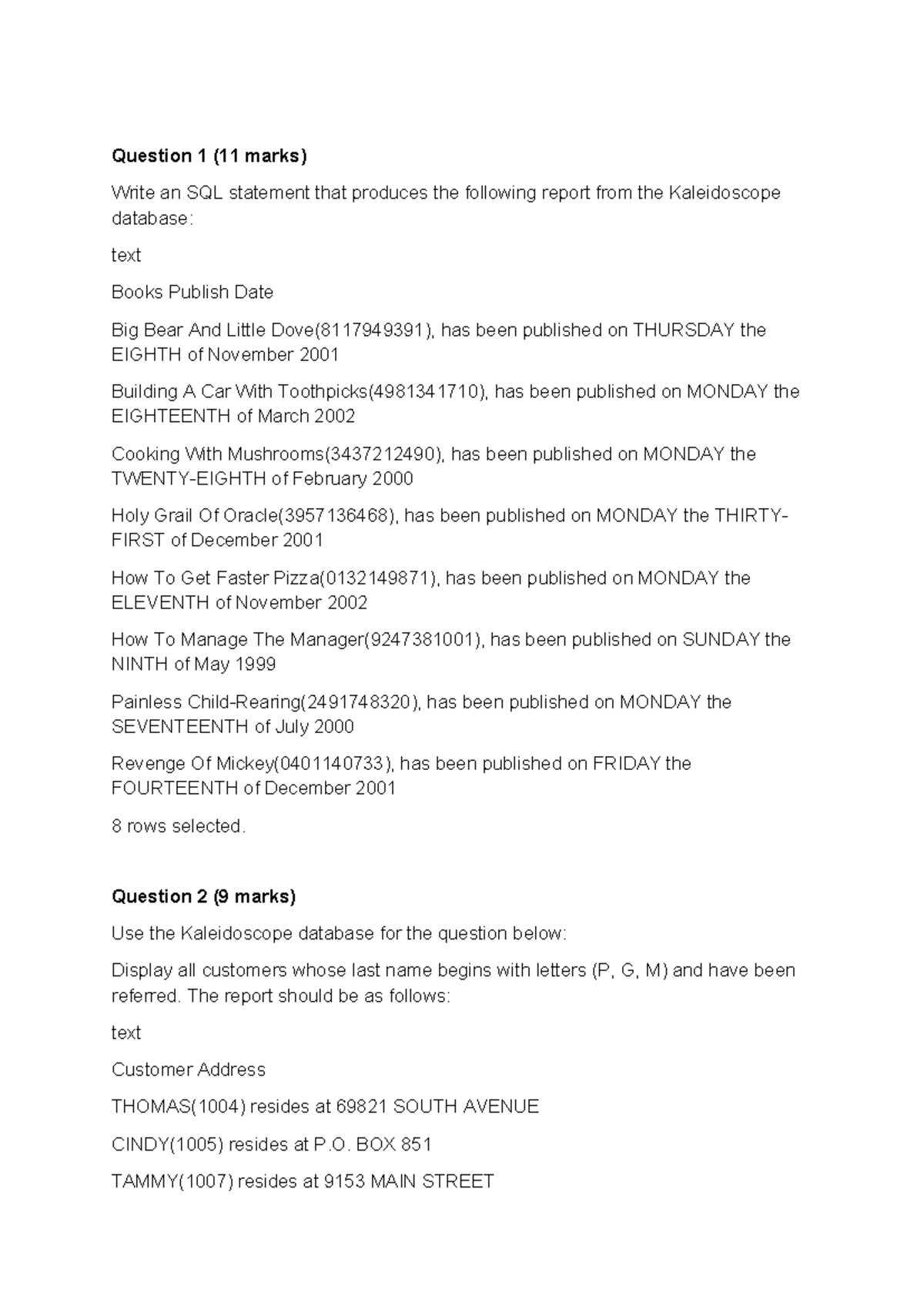 SQL Queries and Database Analysis for LO 6 7 8 260414 213819 - Studocu