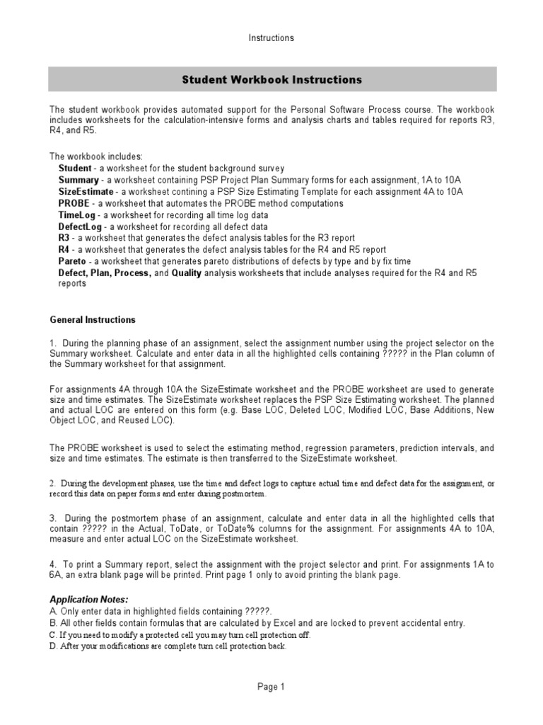 Student Workbook Instructions: Application Notes | PDF | Worksheet ...