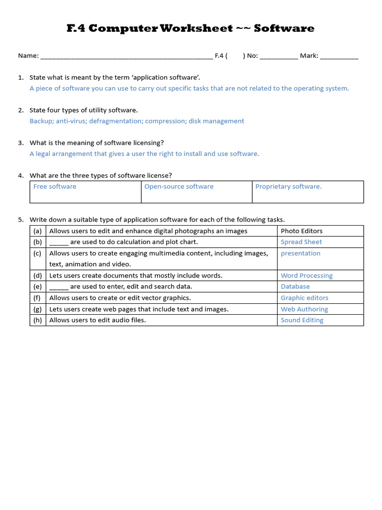 F4 Worksheet (Software) 2 (With Answer) | PDF | Computer File ...