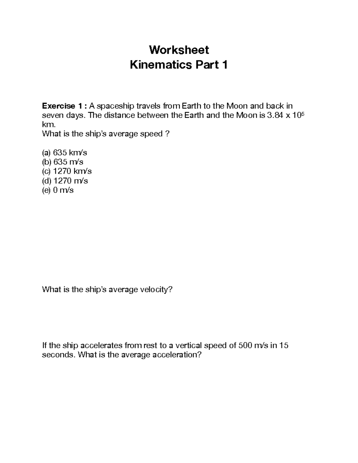 Kinematics Part 1 Worksheet - Studocu
