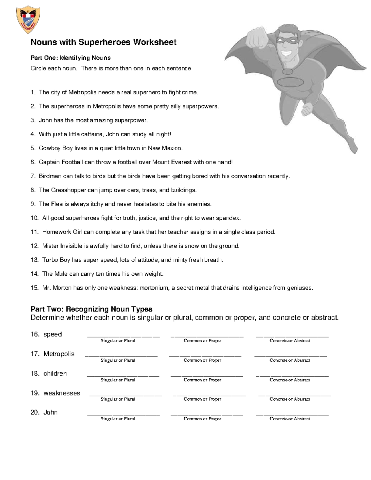 5th W16 Superheroes - Nouns Identification Worksheet - Studocu