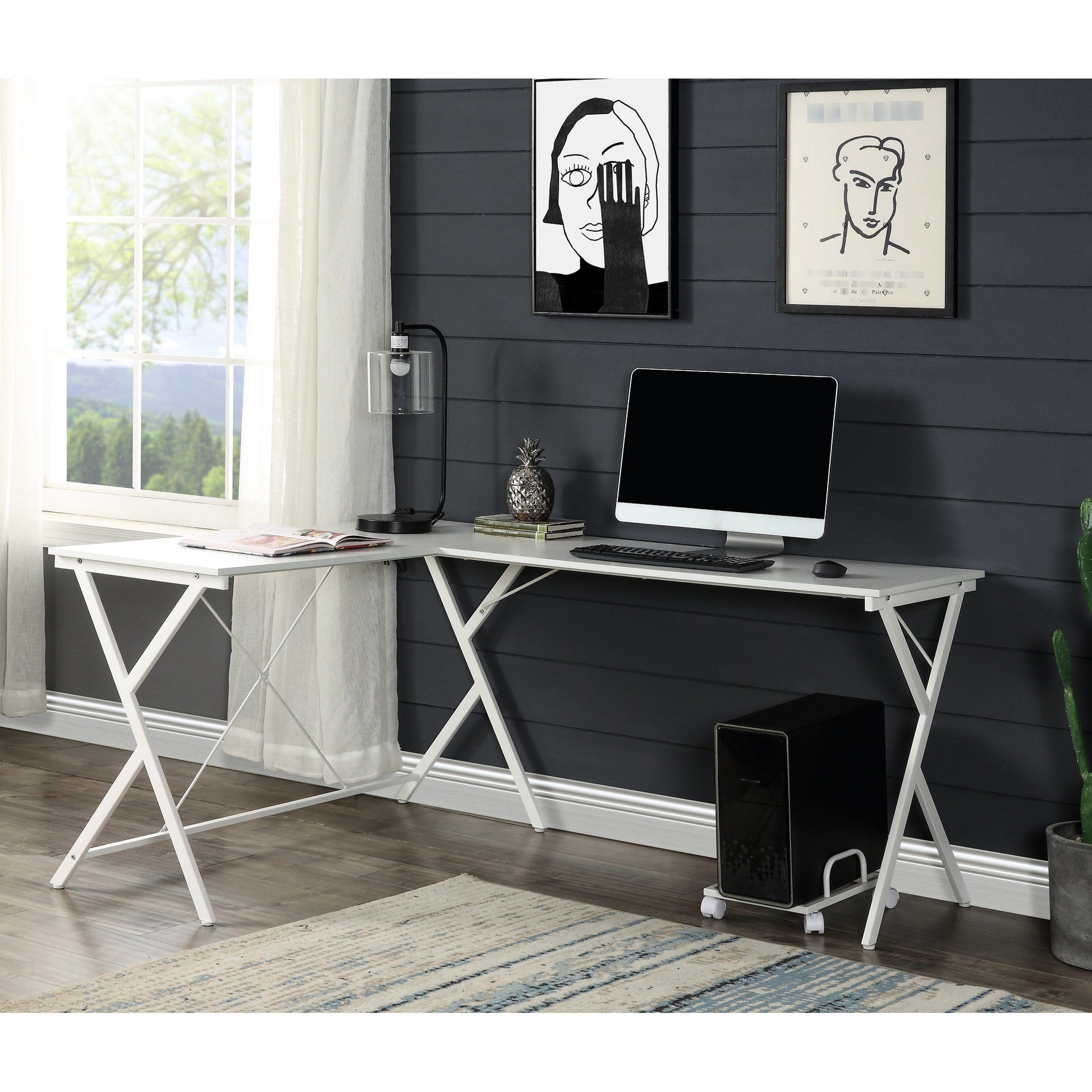 White finish - Space-saving L-shape design - For compact work areas ...