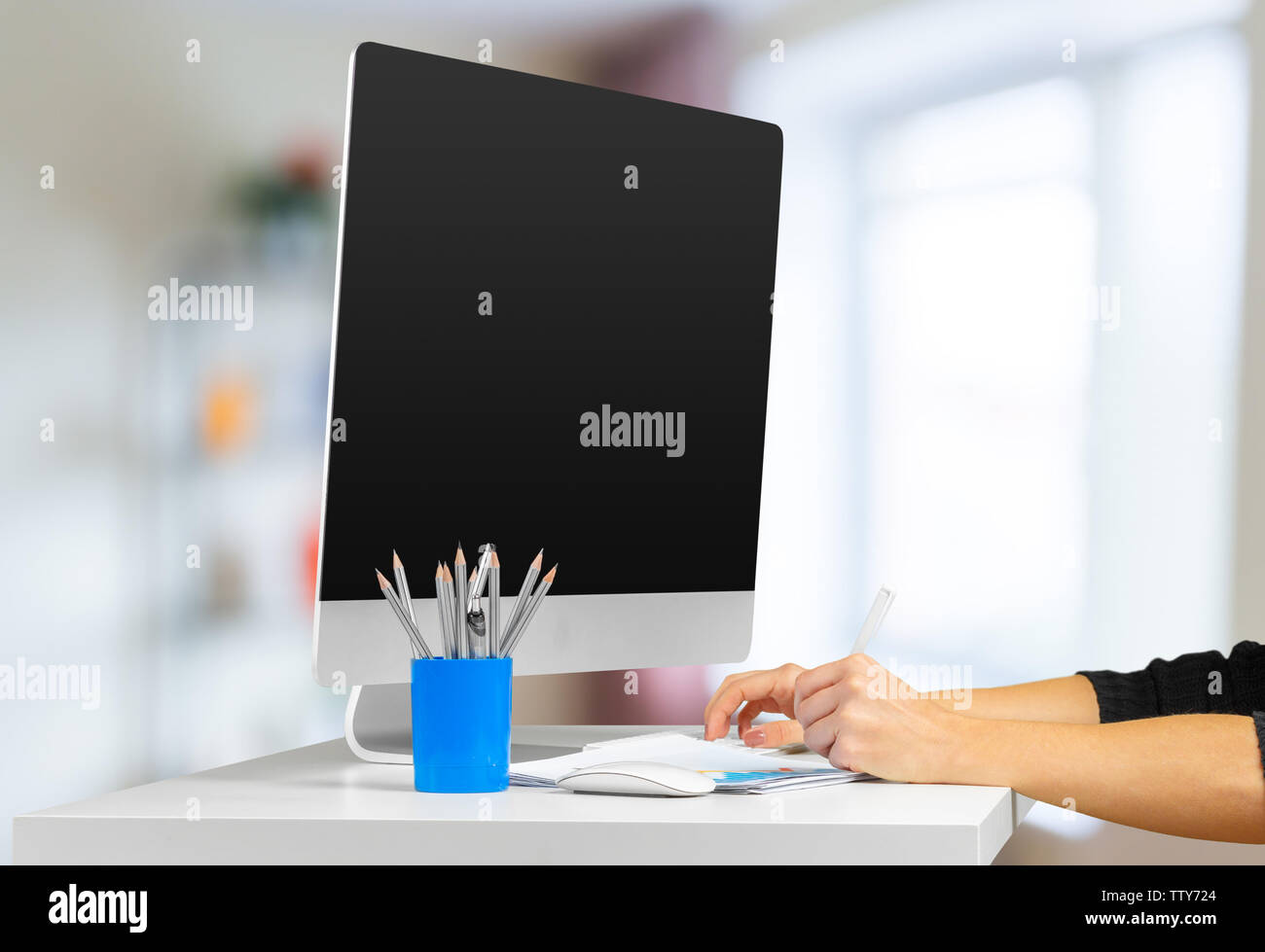 workspace with computer Stock Photo - Alamy