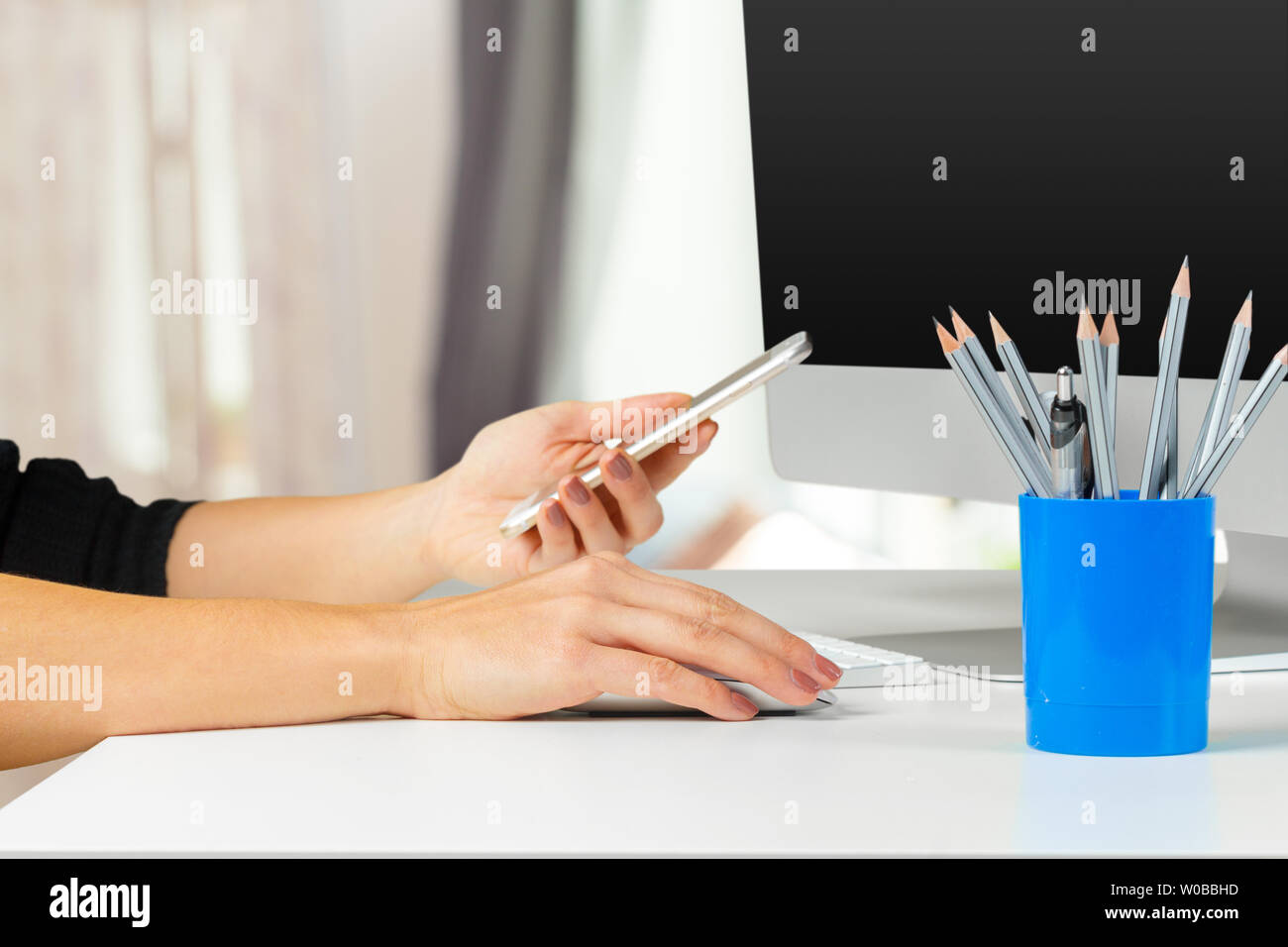 workspace with computer on home or studio, natural light Stock Photo ...