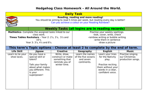 Year 1 thematic homework for the topic 'Around the World' | Teaching ...