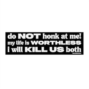 Do Not Honk at Me My Life is Worthless I Will Kill Us Both Bumper ...