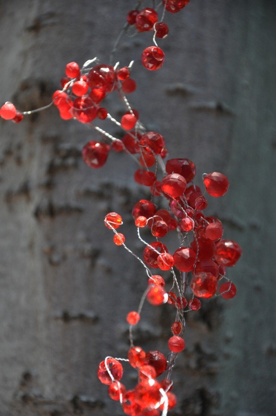 4 Foot Long Red Beaded Wire Wrappable Garland, Red Frosted + Red ...