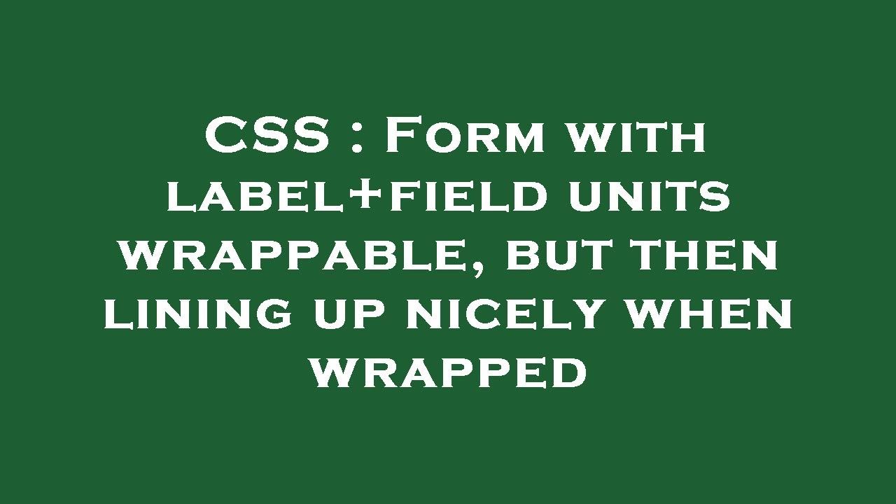 CSS : Form with label+field units wrappable, but then lining up nicely ...
