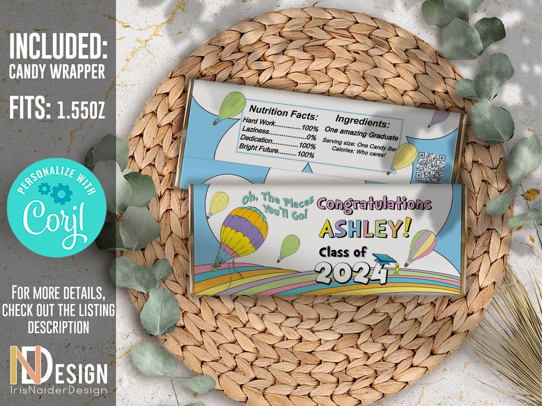 EDITABLE Candy Bar Wrapper, Graduation, Chocolate Bar Wrappers, 1.55 Oz ...