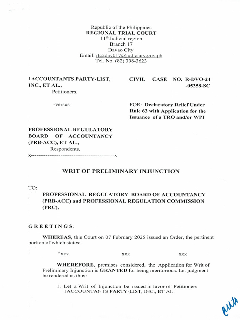 Writ of Preliminary Injunction Dated March 25, 2025 - 1APL | PDF