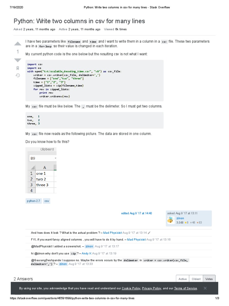 Python - Write Two Columns in CSV For Many Lines - Stack Overflow | PDF