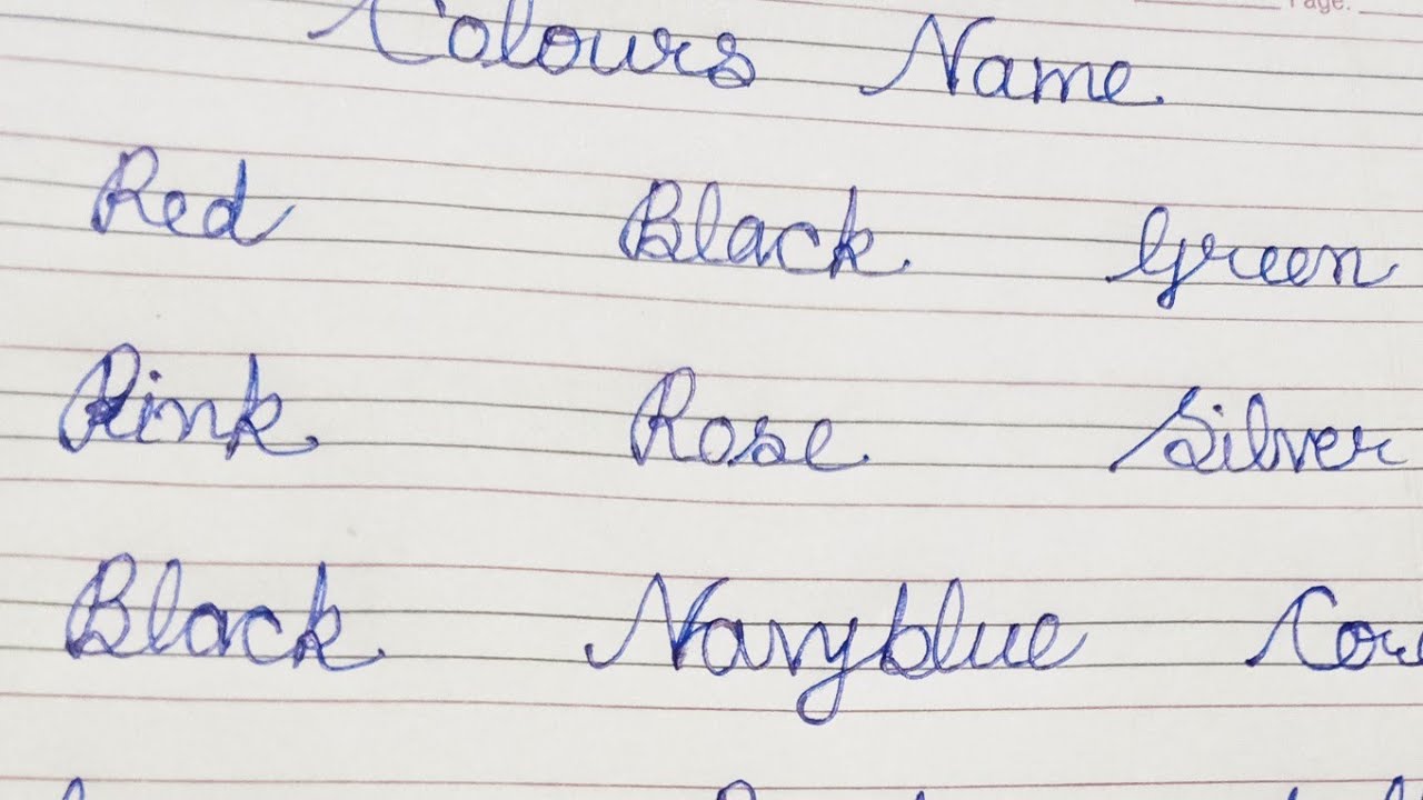 How to write Colours name | Colors | English cursive writing practice ...