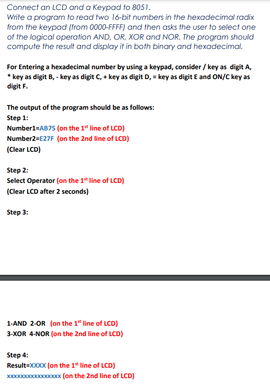 Solved Connect an LCD and a Keypad to 8051. Write a program | Chegg.com
