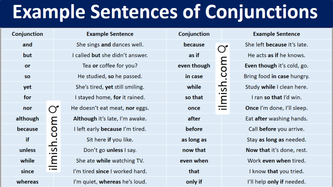 Example Sentences of Conjunctions in English with Pictures - ilmish