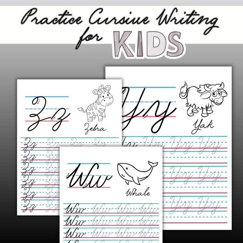 Cursive Handwriting Practice Sheets With Illustrations - Etsy