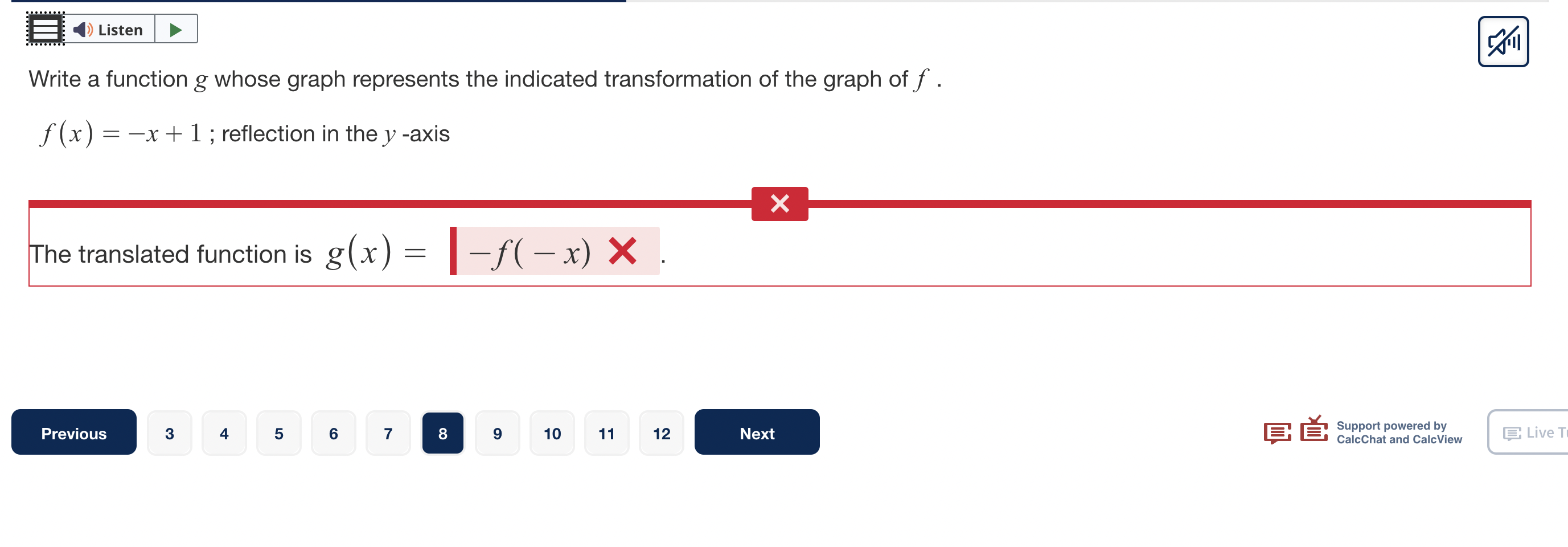 write a function g whose graph represents the indicated transformation ...