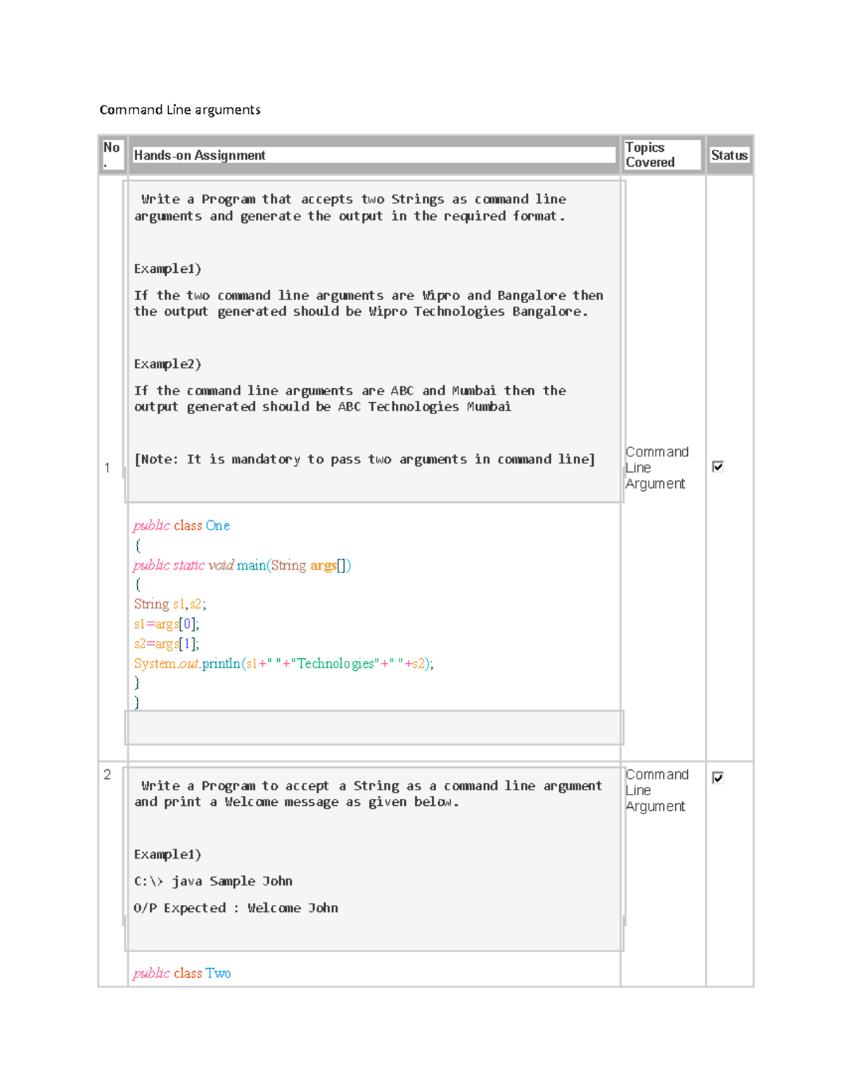 Java Command Line Argument Programs: Hands-on Assignments - Studocu