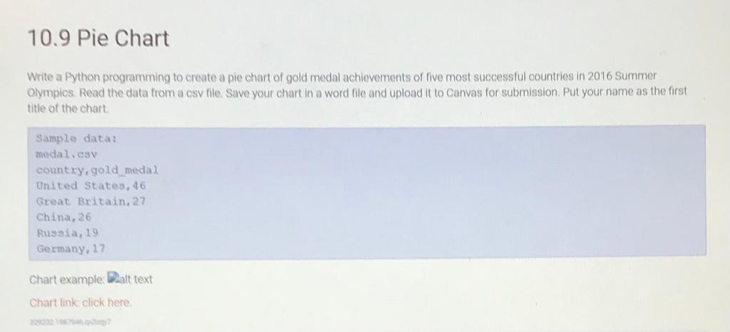 Solved 10.9 Pie Chart Write a Python programming to create a | Chegg.com