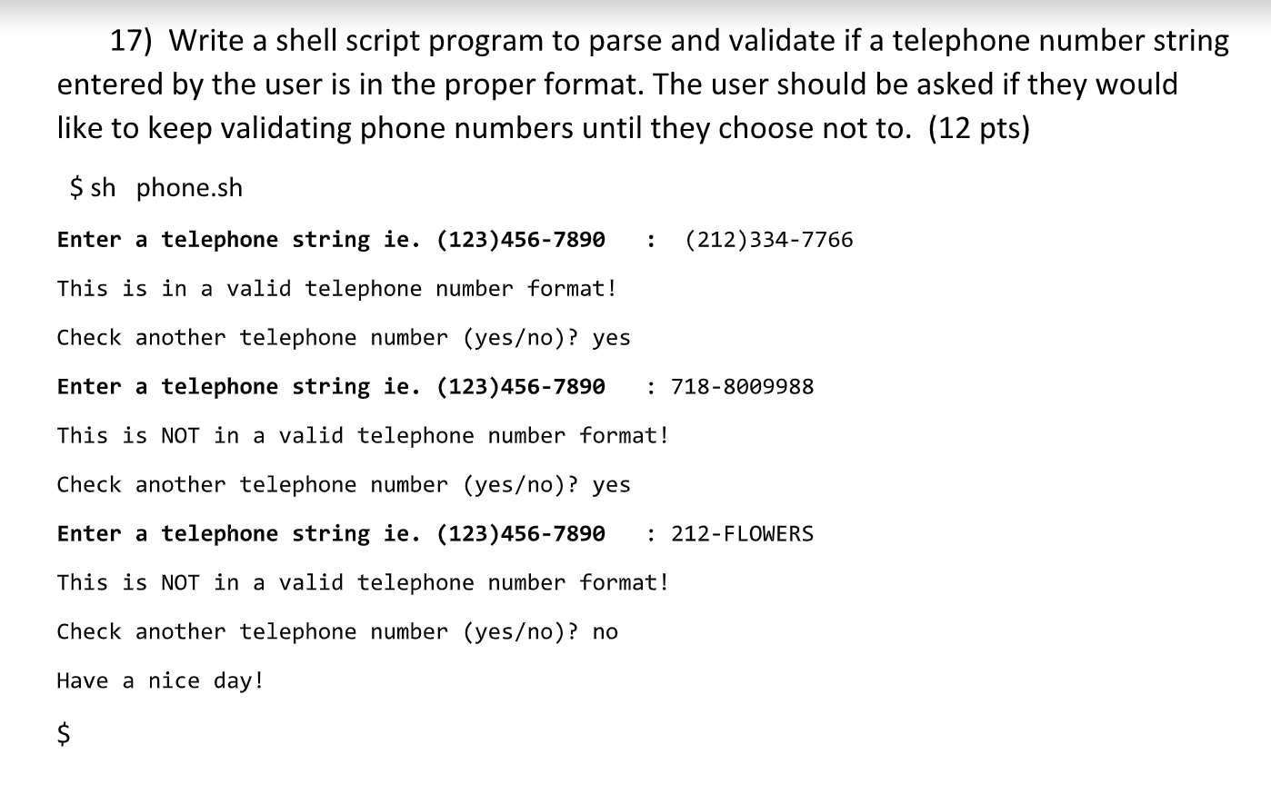 Solved 17) Write a shell script program to parse and | Chegg.com