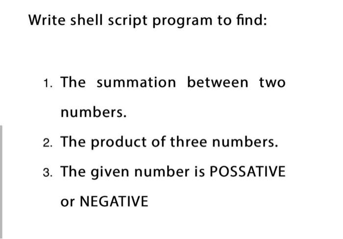 Solved Write shell script program to find: 1. The summation | Chegg.com