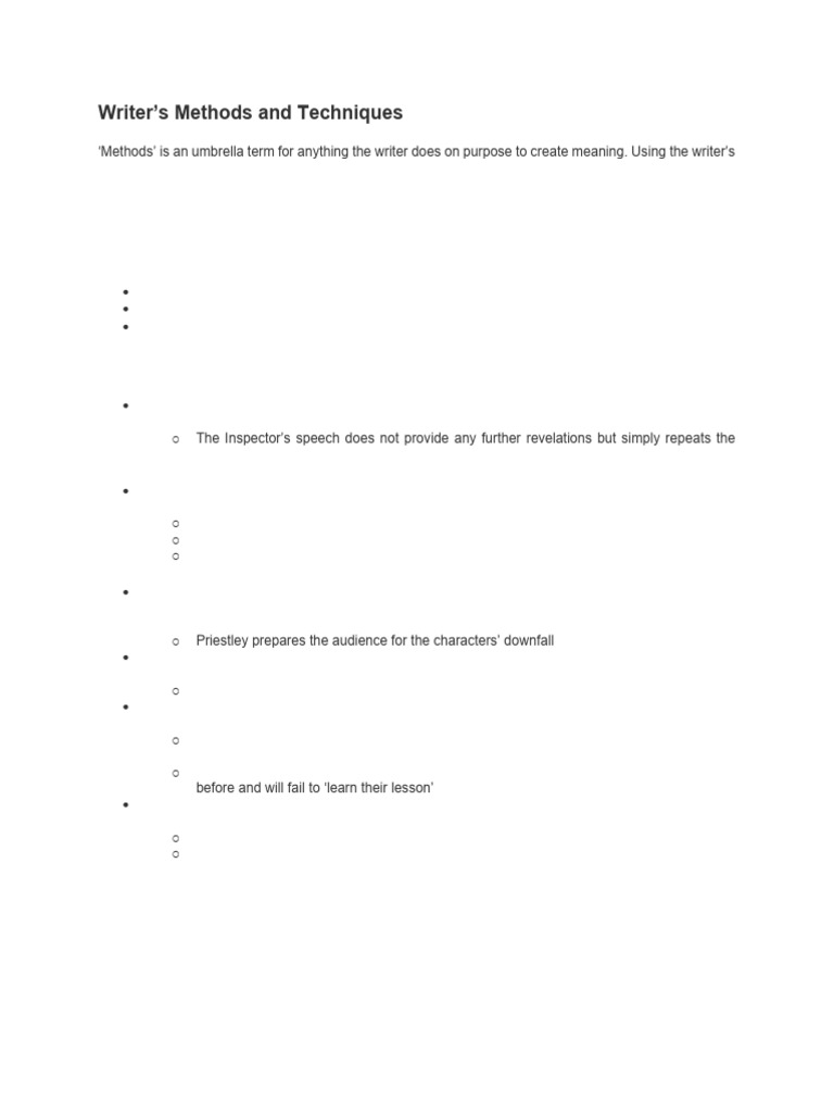 Techniques of Writers - Summarized Notes and structured responses to ...