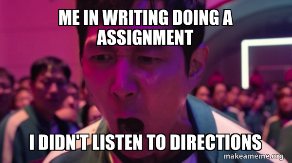 Me in writing doing a assignment I didn't listen to directions - I've ...