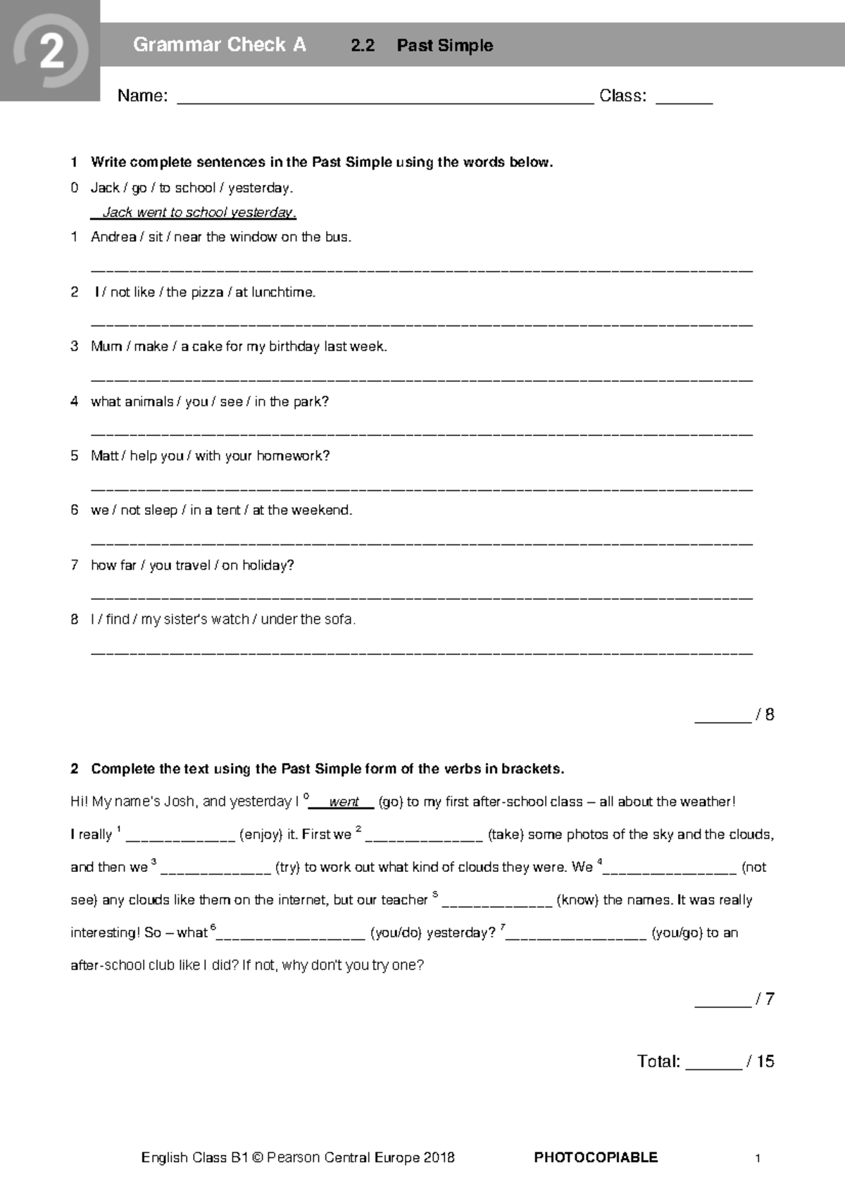 Grammar Check ECB1: Past Simple Exercises for Class 1 - Studocu