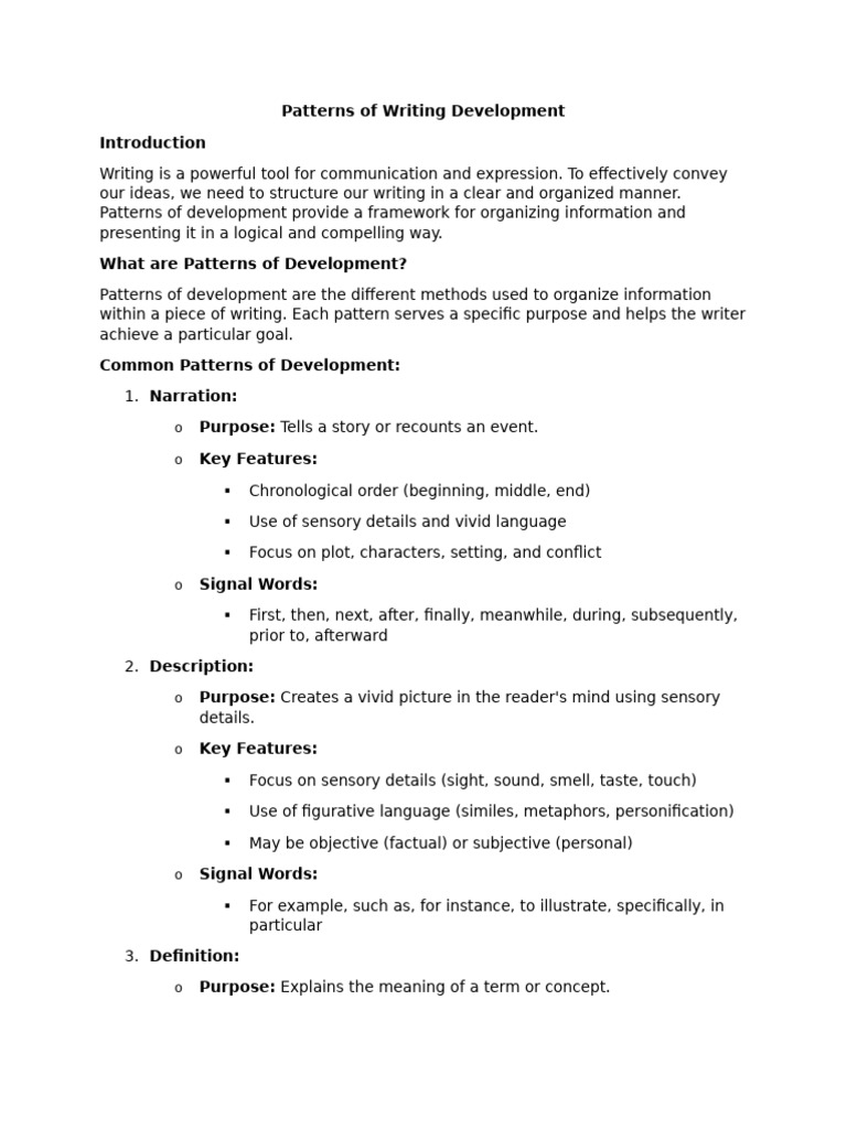 Writing Development Patterns Explained | PDF | Definition | Information