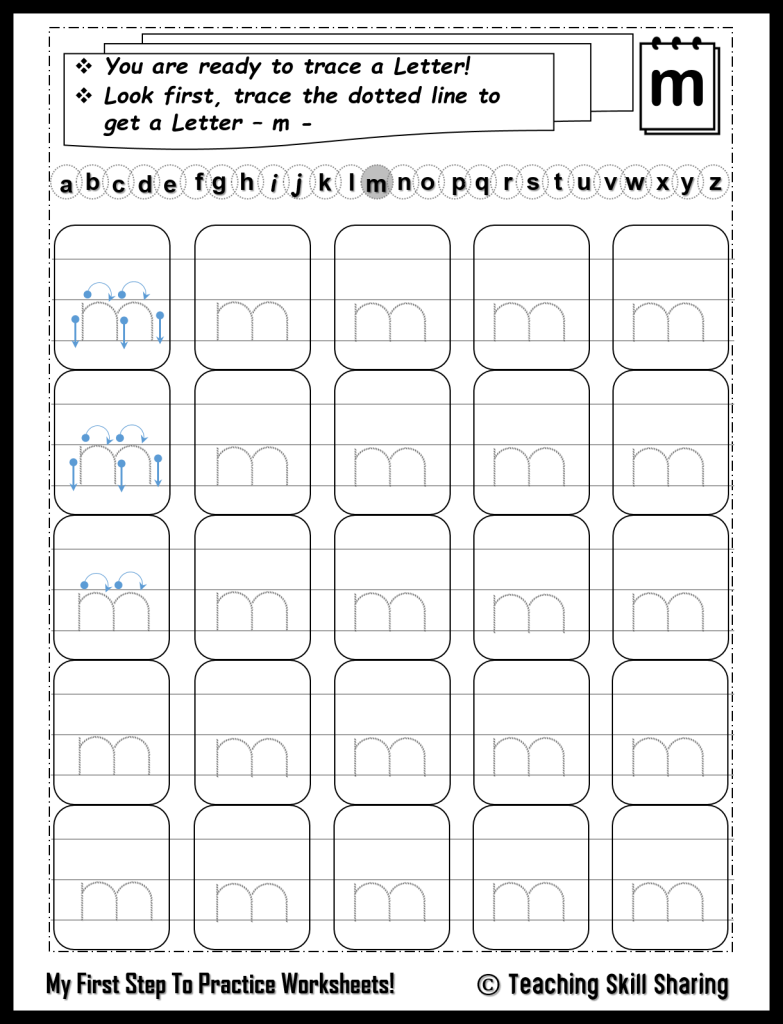 ABC Alphabet Letter Tracing. Lowercase letter m. Handwriting practice ...