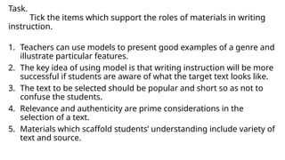 Aspect of materials writing | PPTX | Education