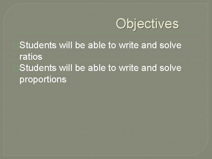 Chapter 7 Section 1 Ratios and Proportions Objectives