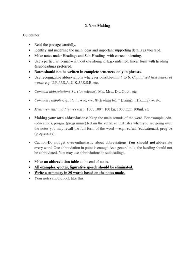 Format of Note-Making | PDF