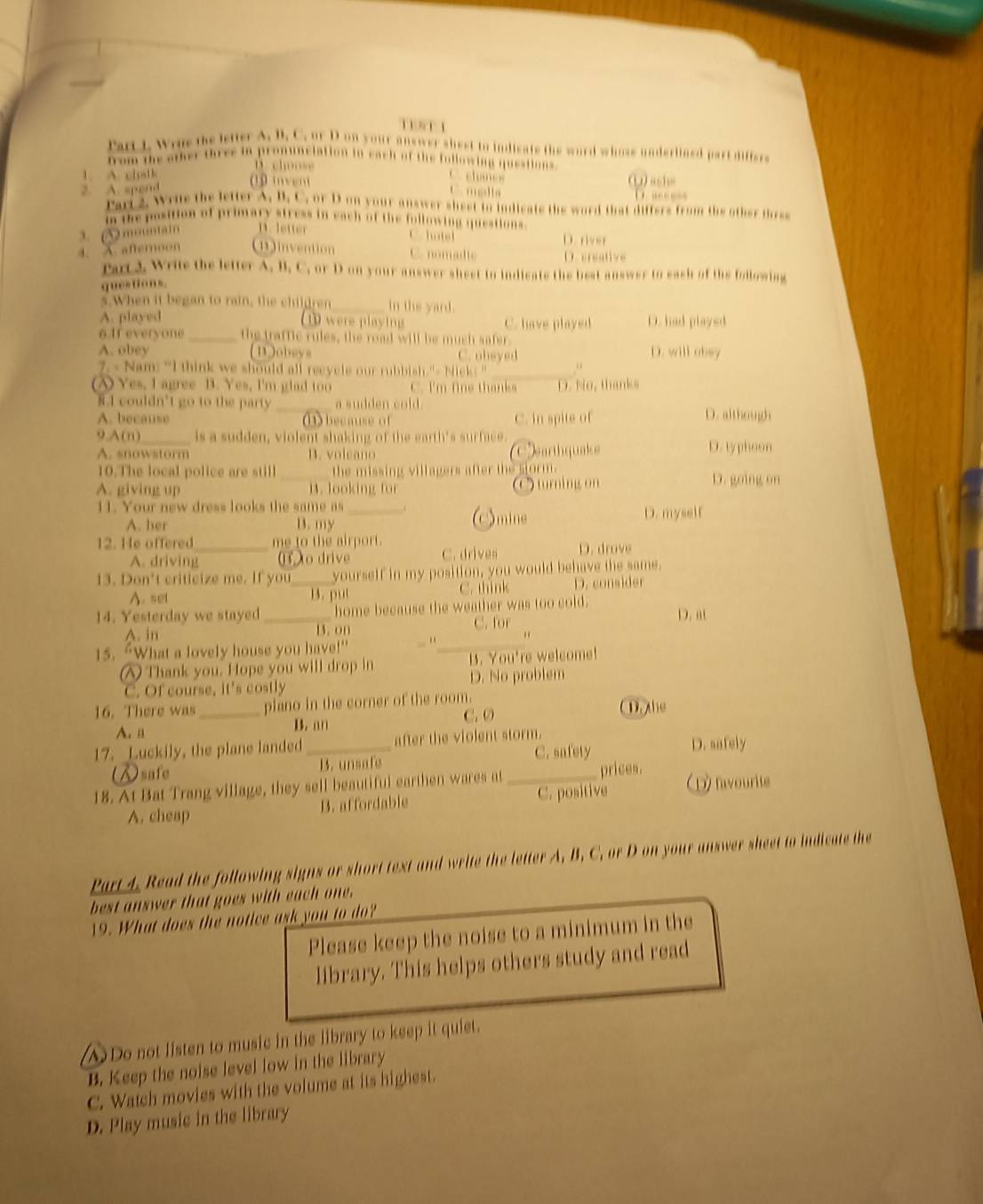 Giải quyết:Wone me letter A. B. C. or D on your answer shest to ...