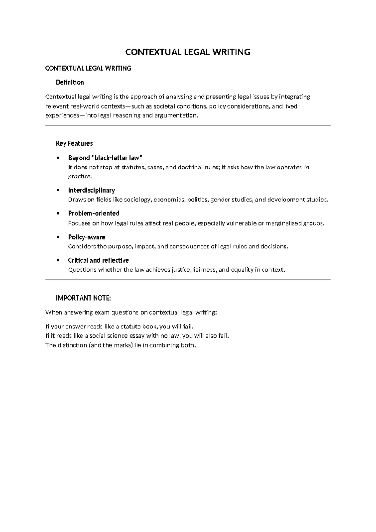 Contextual Legal Writing Exercise - Key Concepts and Guidelines - Studocu