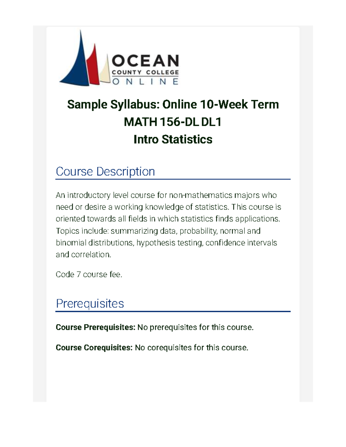 MATH 156-DL: Intro Statistics Syllabus - Studocu