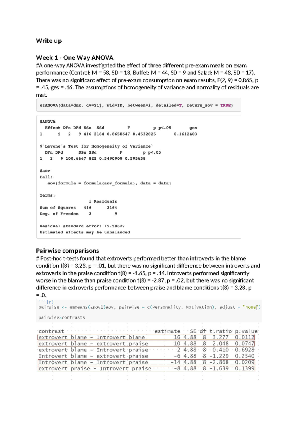 Statistics Write Up: ANOVA, GLM, and Mixed Models Analysis - Studocu
