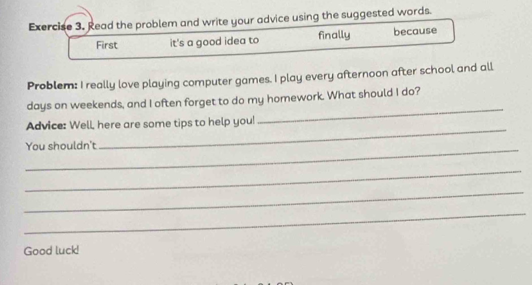 Giải quyết:Read the problem and write your advice using the suggested ...