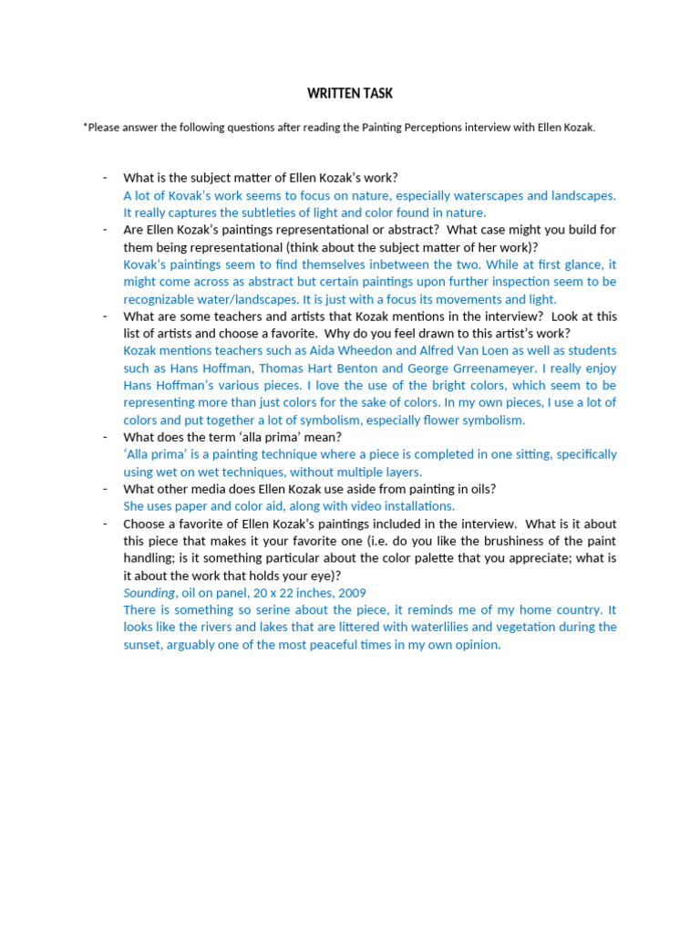 WRITTEN TASK_Interview with Ellen Kozak | PDF | Paintings | The Arts